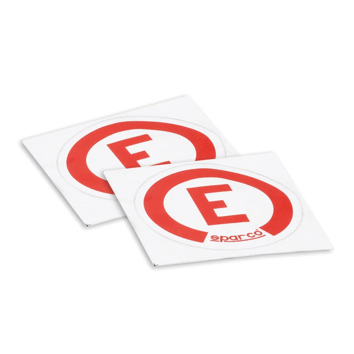 Autocollants « E » homologués pour signaler l'activation des extincteurs Sparco.