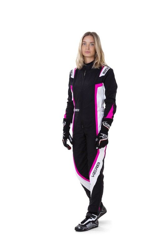 Combinaison de karting Sparco CIK-FIA N2013.1 KERB LADY pour la compétition. Confort optimal grâce à sa respirabilité. Conception et coupe spécifiques pour les femmes.