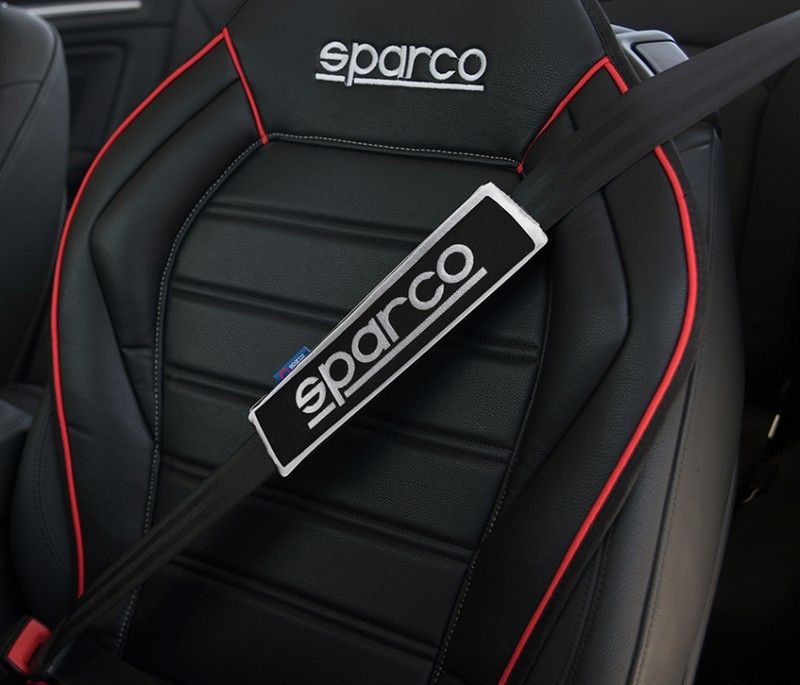 Coussin de ceinture de sécurité noir Sparco pour voiture. Empêche les frottements causés par la ceinture et offre un confort accru.